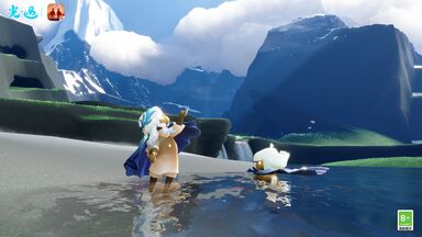 3、來到云野,穿過前面的云層,來到蝴蝶平原,轉身繞過饅頭山,可以抬頭尋找一下星光,飛過去觸碰它即可完成;