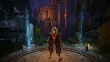 2.王城有個和大賜福一模一樣的建筑,從王城的賜福“王城西邊城墻”向南出來后找位置跳到右側底部就到了,此建筑一樓內盡頭右手邊門內就是賜福“城寨一樓”。