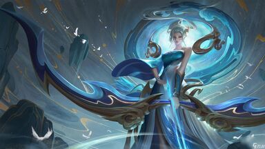 2、這款皮膚的外觀造型十分帥氣,以諸葛亮為原型,融合了水墨古風元素,一頭潔白的銀發尤其吸晴,身邊還有一把寶劍。