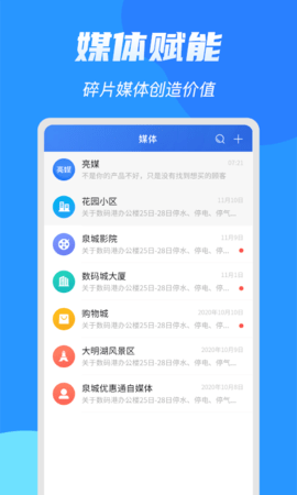 亮媒是一款融合線上線下資源的信息服務平臺,它依托位置與特定場景的深度挖掘,搭建起全媒體矩陣,以此實現信息服務的精細化運作。平臺能夠整合線上線下的信息資源,結合位置與特定場景展開信息挖掘工作,構建全媒體矩陣,從而滿足用戶對于個性化信息服務的需求。亮媒的宗旨在于為用戶提供更全面、精準且個性化的信息服務,助力用戶及時獲取所需信息。