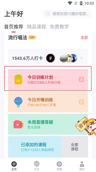 「訓練計劃」「聲音評測」「直播」等功能也都很完備,能夠針對高音、氣息、音色等演唱環節的問題進行有效解決,幫助使用者擺脫五音不全的困擾,重新擁有動聽的嗓音。
