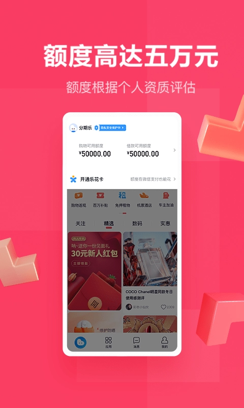 提供“樂花借錢”服務,年化利率在8%至24%之間(按單利計算),可申請額度為3000元到50000元,其中每筆借款的最高金額為40000元,且資金能夠快速到賬。